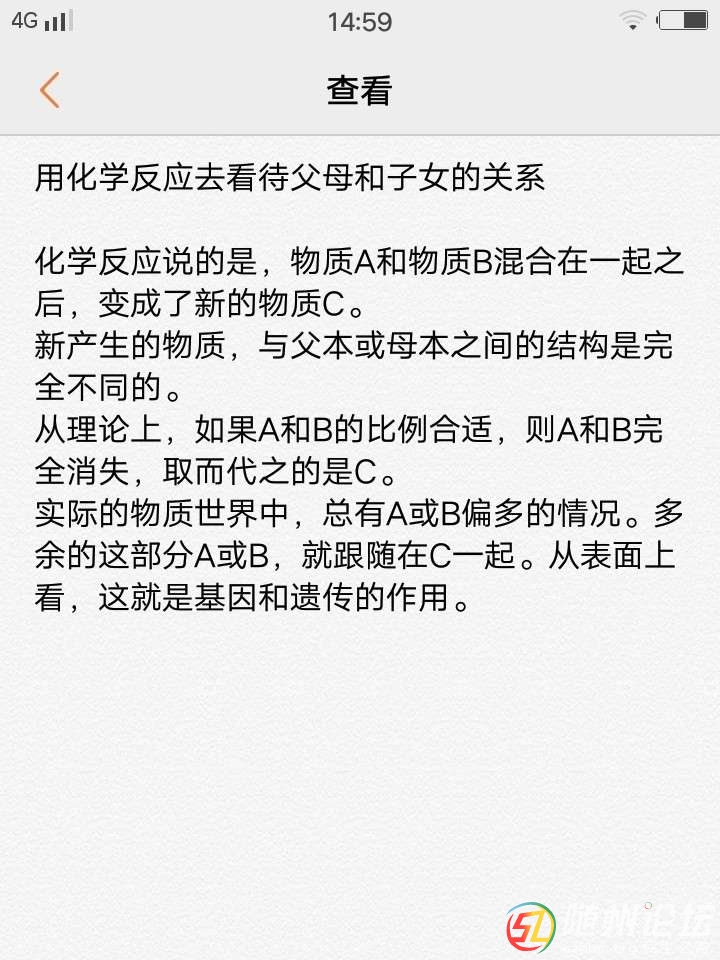 用化學反應去看待父母和子女的關(guān)系 化學反應說的是,物質(zhì)A和物質(zhì)B混合在一起之后,變成了新的物質(zhì)C。 新產(chǎn)生的物質(zhì),與父本或母本之間的結(jié)構(gòu)是完全不同的。 從理論上,如果A和B的比例合適,則A和B完全消失,取而代 ...