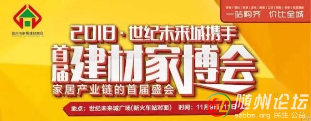 買東西跟換工作找對象一樣時機很重要,抓住了機會同樣品牌同樣的產品你買的會便宜很多11月9日-11日世紀未來城廣場(新火車站對面)2018隨州首屆建材家博會 不見不散!隨手轉給身邊要買家具建材的好友 別忘了給小隨 ...