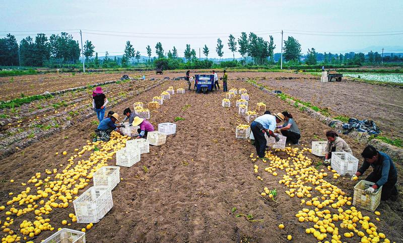 眼下正值土豆收獲時節(jié),隨縣唐縣鎮(zhèn)魯城河村到處是豆農(nóng)采收土豆忙碌的身影。(隨州論壇全媒記者李文軍攝)