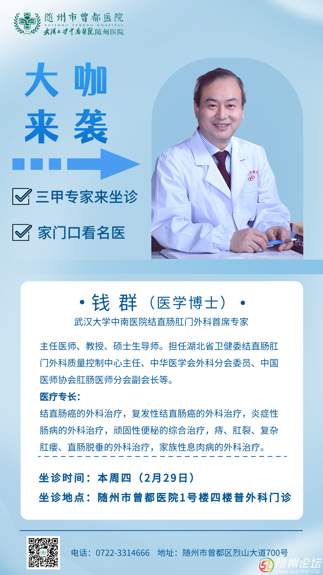 隨州市曾都醫(yī)院:“錢(qián)群教授團(tuán)隊(duì)工作室”坐診公告