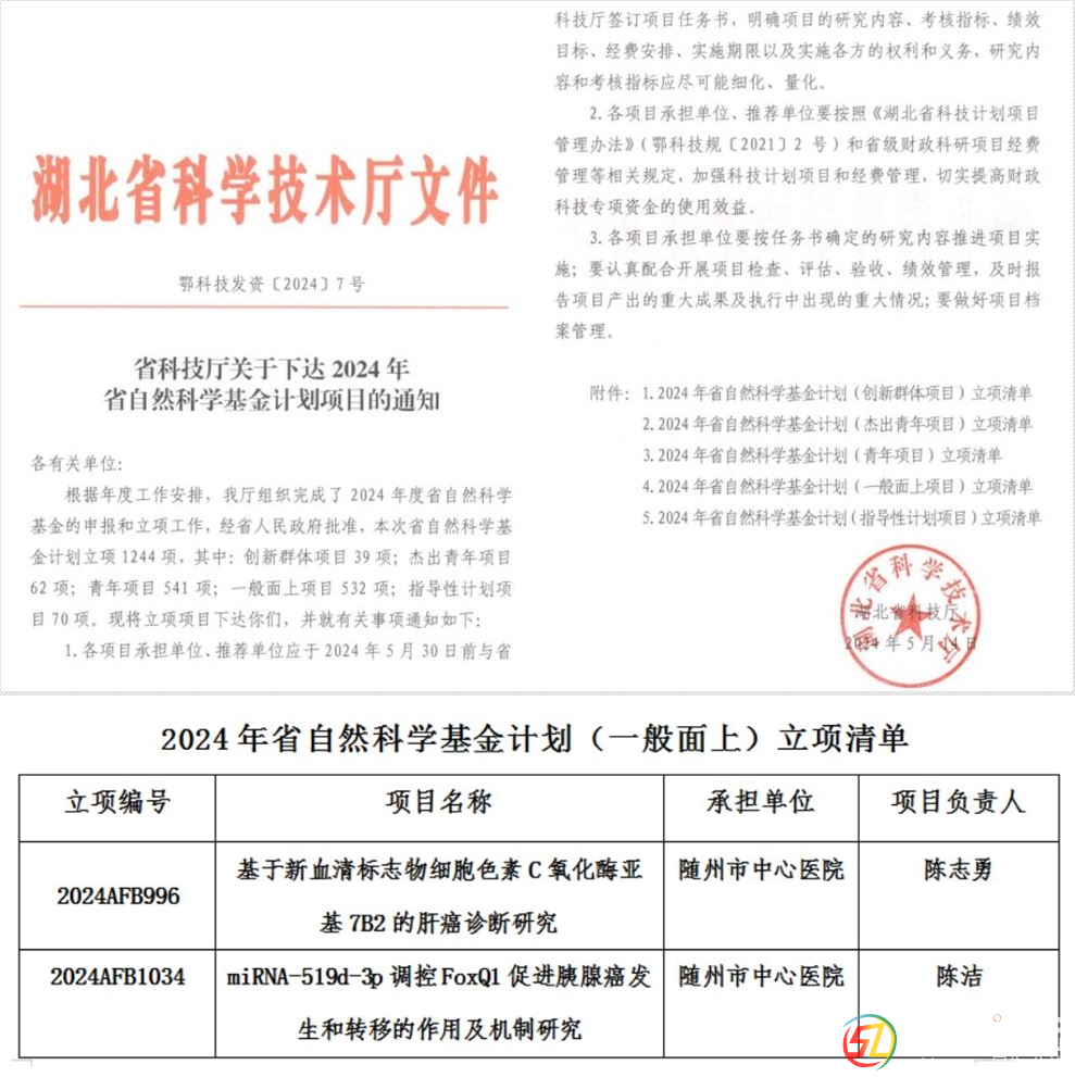 本帖最后由 開心一點(diǎn) 于 2024-5-28 09:11 編輯 好消息隨州市中心醫(yī)院2個科研項(xiàng)目獲得湖北省自然科學(xué)基金立項(xiàng) 近日,湖北省科學(xué)技術(shù)廳發(fā)布了《關(guān)于下達(dá)2024年省自然科學(xué)基金計(jì)劃項(xiàng)目的通知》,隨州市中心醫(yī)院消化 ...