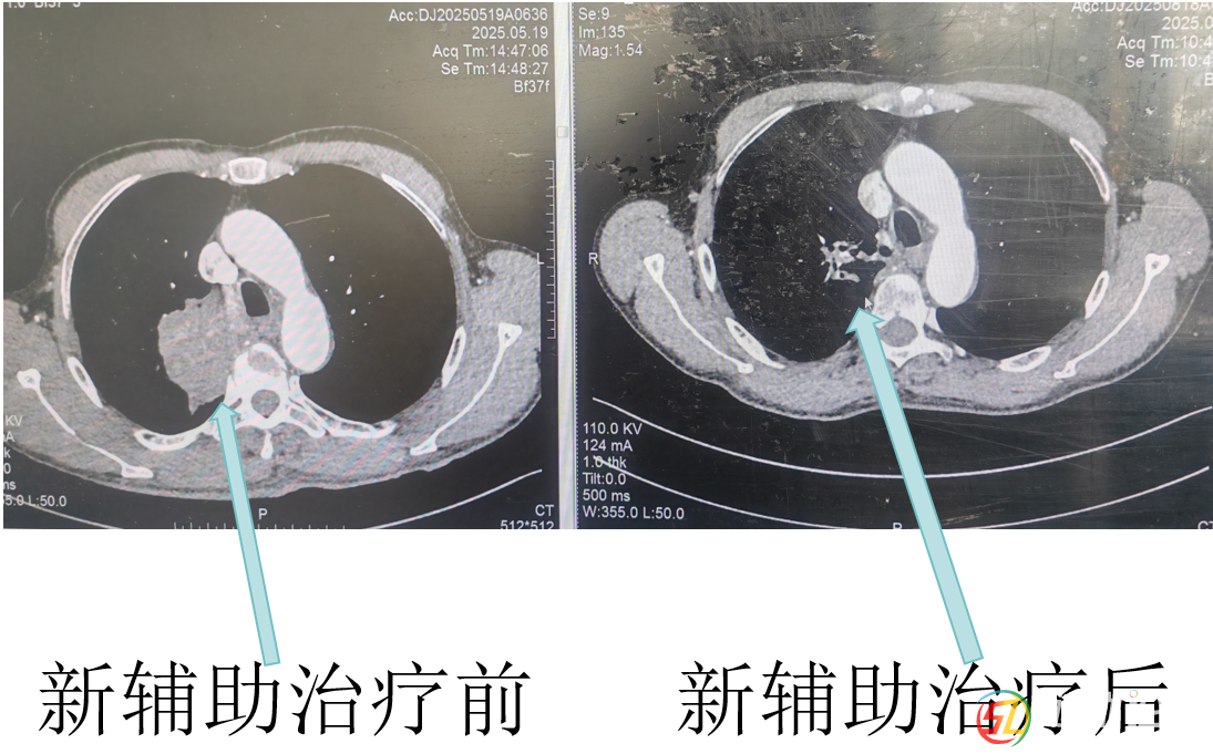 但羅大爺及家人手術(shù)意愿非常強(qiáng)烈。為此,心胸血管外科主任鮑傳明及時(shí)組織多學(xué)科專家會(huì)診,共同研討診療方案,副主任醫(yī)師彭均偉提出了一個(gè)“先轉(zhuǎn)化,再手術(shù)”的新思路:先用三個(gè)周期的化療加免疫治療,等腫瘤縮小后再評(píng)估手術(shù)機(jī)會(huì)。