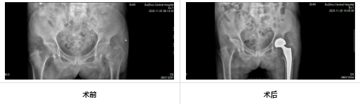在充分的術(shù)前準(zhǔn)備與精細(xì)的術(shù)中操作下,團(tuán)隊(duì)成功為患者實(shí)施人工髖關(guān)節(jié)置換術(shù)。手術(shù)時間短、出血少,極大減輕了患者身體負(fù)擔(dān)。術(shù)后,在護(hù)理團(tuán)隊(duì)的精心照護(hù)與康復(fù)指導(dǎo)下,老人恢復(fù)良好,疼痛顯著緩解,生活質(zhì)量大幅提升??粗习橹芈缎θ?,老先生感激滿懷。