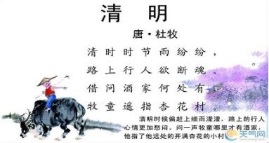 清明祭祖上墳塋 祭祀活動講細(xì)節(jié)聶紹崢“清明時節(jié)雨紛紛,路上行人欲斷魂,借問酒家何處有,牧童遙指杏花村”。晚唐杰出詩人杜牧膾炙人口的詩句千古傳誦是人耳熟能詳。詩人通過描摹清明時節(jié)的陰雨天氣, ...