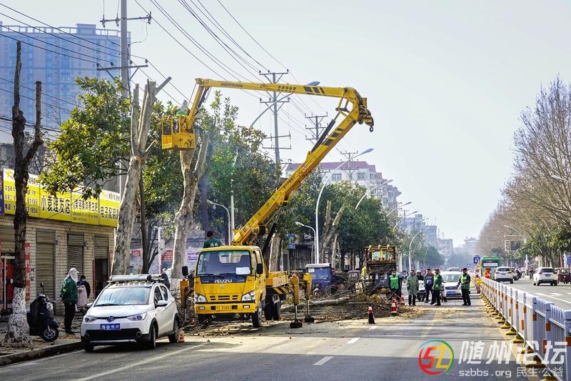 清除行道樹病枝枯枝 + h1 p M! M/ V- B 7 ]- d1 J6 ~4 N& w& f0 }# C市綠化管理處日前組織工人通過疏枝截枝等方法,清除行道樹病枝枯枝,不僅美化城市環(huán)境,還保障了市民人身安全。圖為園林工人正在沿 ...