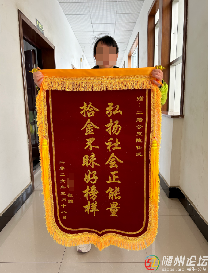 本帖最后由 自由如風 于 2026-3-20 11:06 編輯 隨州論壇訊(通訊員楊俊琳)2026年3月19日上午,市民羅女士專程將一面印有“弘揚社會正能量,拾金不昧好榜樣”的錦旗送到工作人員手中,向2路公交車駕 ...