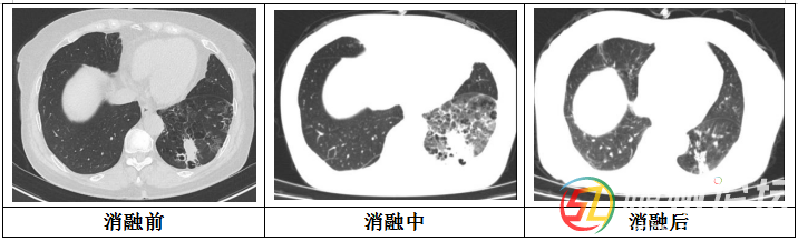在MDT團(tuán)隊(duì)精密配合下,借助高分辨率CT的實(shí)時(shí)引導(dǎo),將一根細(xì)長(zhǎng)的冷凍探針精確穿刺布控到肺部目標(biāo)腫瘤內(nèi)部。啟動(dòng)冷凍系統(tǒng)后,清晰的“冰球”影像在屏幕上逐漸擴(kuò)大并完全覆蓋了腫瘤區(qū)域及其周圍的安全邊界。整個(gè)冷凍-復(fù)溫循環(huán)過(guò)程高效可控。手術(shù)耗時(shí)約1小時(shí),術(shù)后CT復(fù)查顯示患者肺部腫瘤細(xì)胞滅活效果極佳,第二天該患者便可下床活動(dòng)。